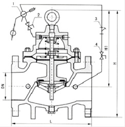 100D 定水位閥結(jié)構(gòu)圖 1、導(dǎo)閥 2、小球閥 3、過濾器 4、小球閥