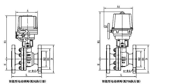 電動帶手輪球閥主要外形及連接尺寸